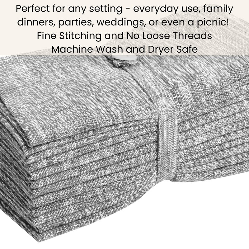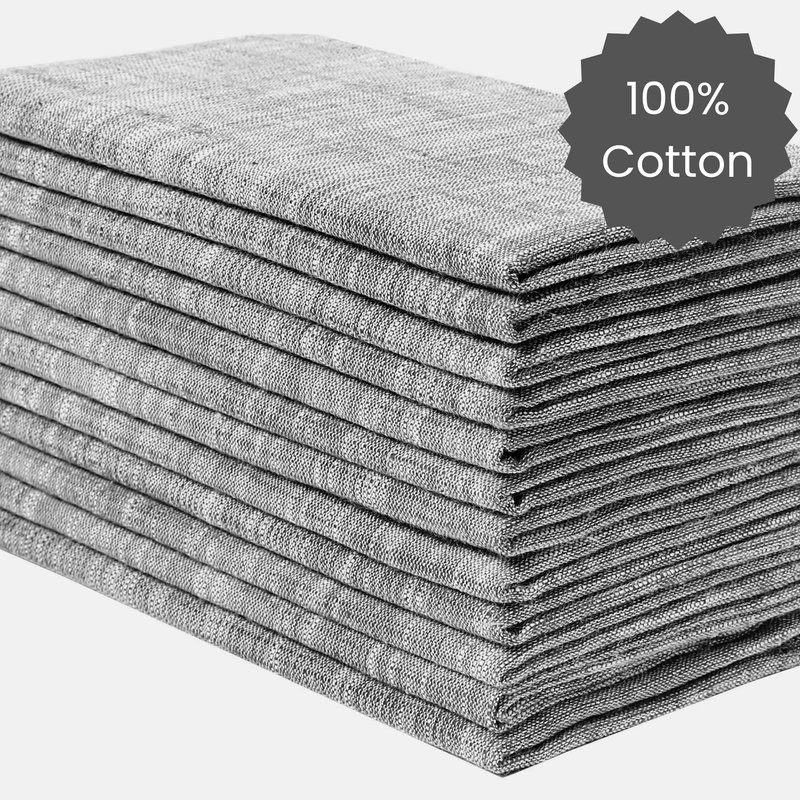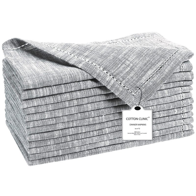 Cotton Clinic 12 Pack Farmhouse Style Slub Textured 18x18 Cloth Dinner Napkins, 100% Cotton for Everyday Use and Events - Soft and Durable Cocktail Napkins, Wedding Dinner Napkins, Grey