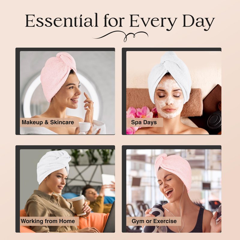 - ππππ«πππ¦π₯π’π§ππ & π π₯ππ±π’ππ₯ππ‘: Elevate Your Everyday Rituals, Seamlessly Transitioning From Breakfast Prep To Post-Shower Skincare, Makeup Touch-ups, and Remote Work With Our Cotton Hair Towels Wrap . Liberate Your Hands For Optimal Comfort and Productivity. Crafted For Convenience, Its Portable Dimensions Make It an Ideal Companion For Travel or Gym Sessions.