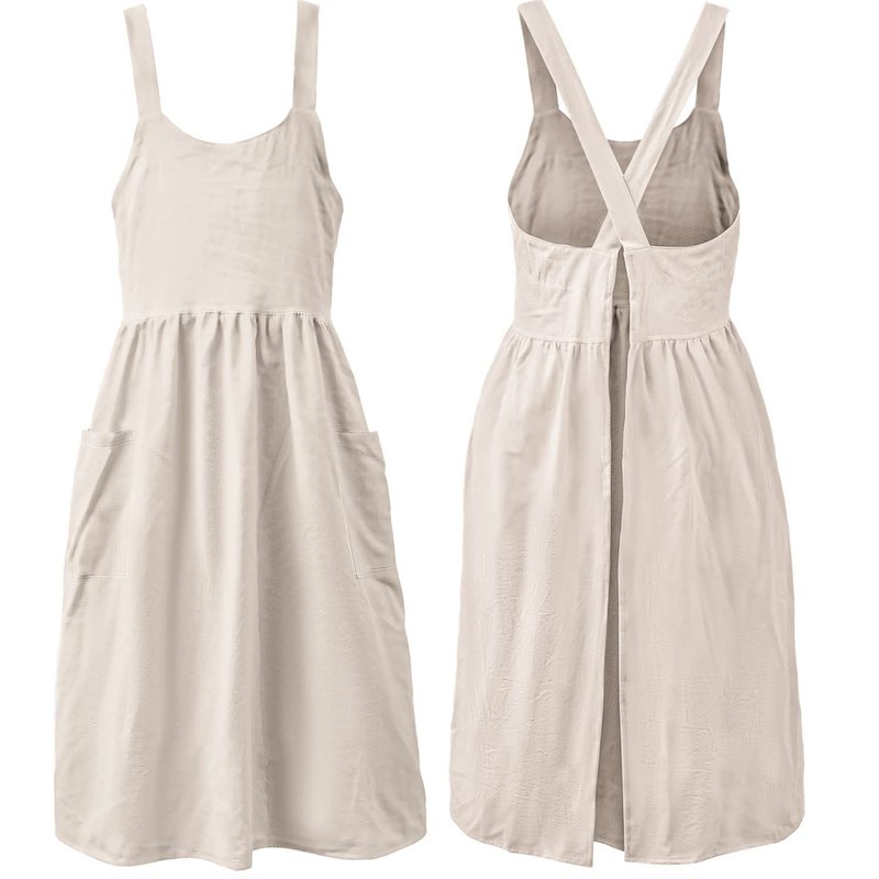 Cotton Linen Apron Cross Back Work Apron for Women with Pockets Pinafore Dress X Cross Halter Apron for Baking Chef Gardening (Beige)