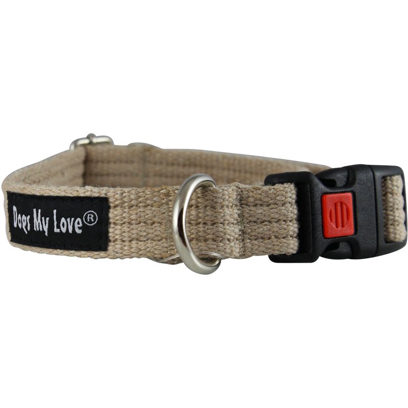 Made of strong and very durable, 100% natural, ecological cotton tape. Features sliding locking device on release buckle to prevent accidental opening. Comfortable for wearing and lighter weight adjustable dog collar. Strong and durable. Ideal collar for everyday use. These fabulous earth friendly dog collars available in four sizes with four different widths for the perfect fit. Please check other Dogs My Love products for matching leashes and harnesses