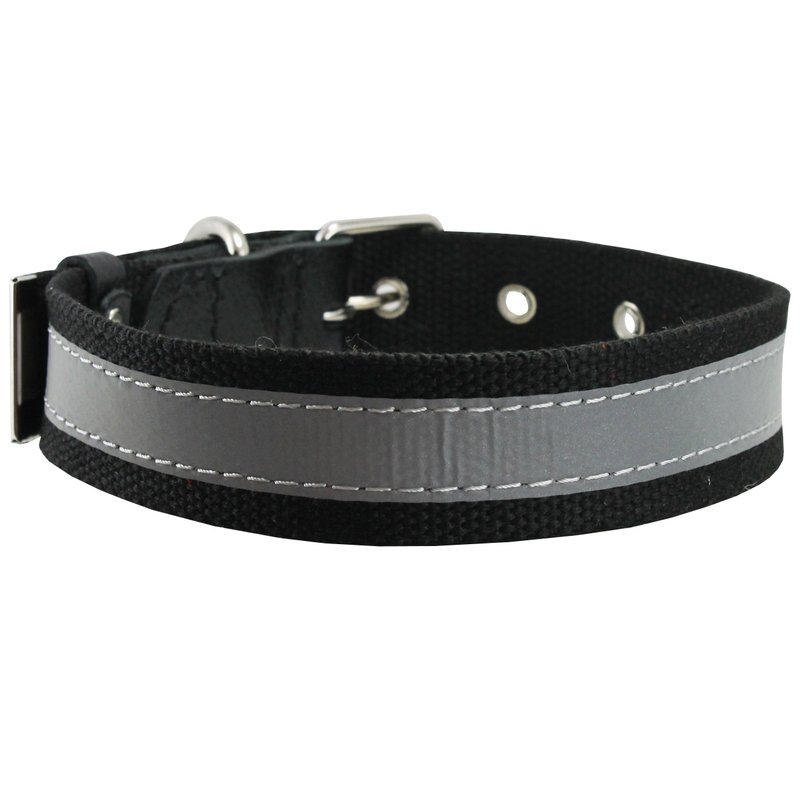 Cotton Web/Leather Reflective Dog Collar 18" Long 3/4" Wide Fits 12"-16" Neck, Poodle, Spaniel