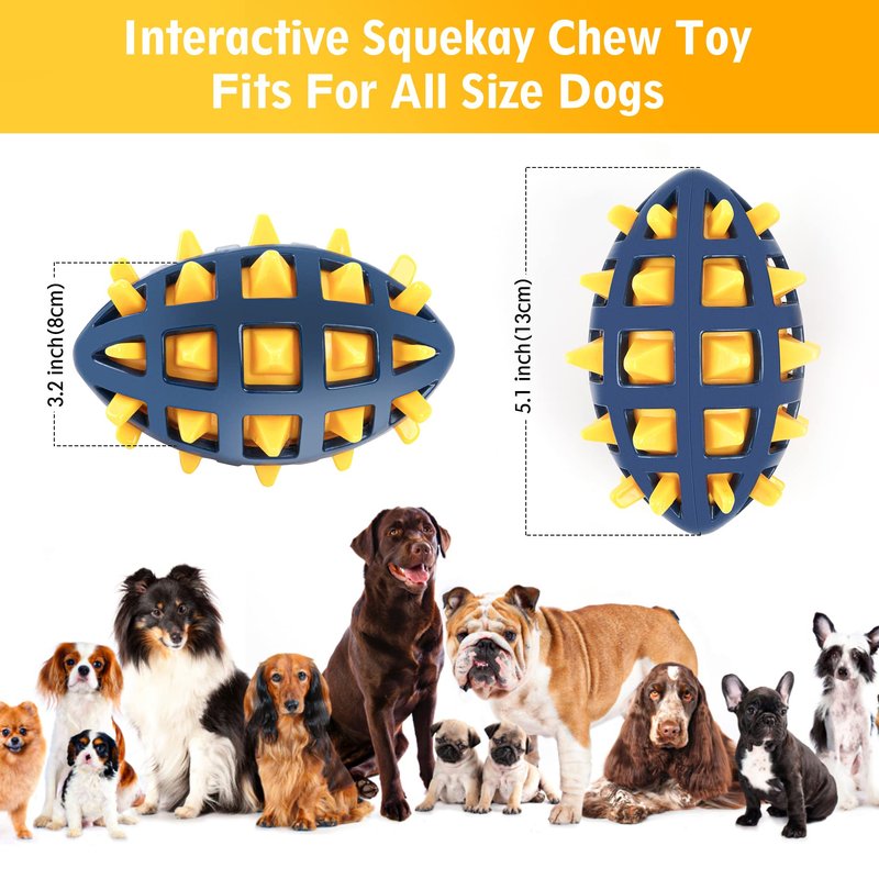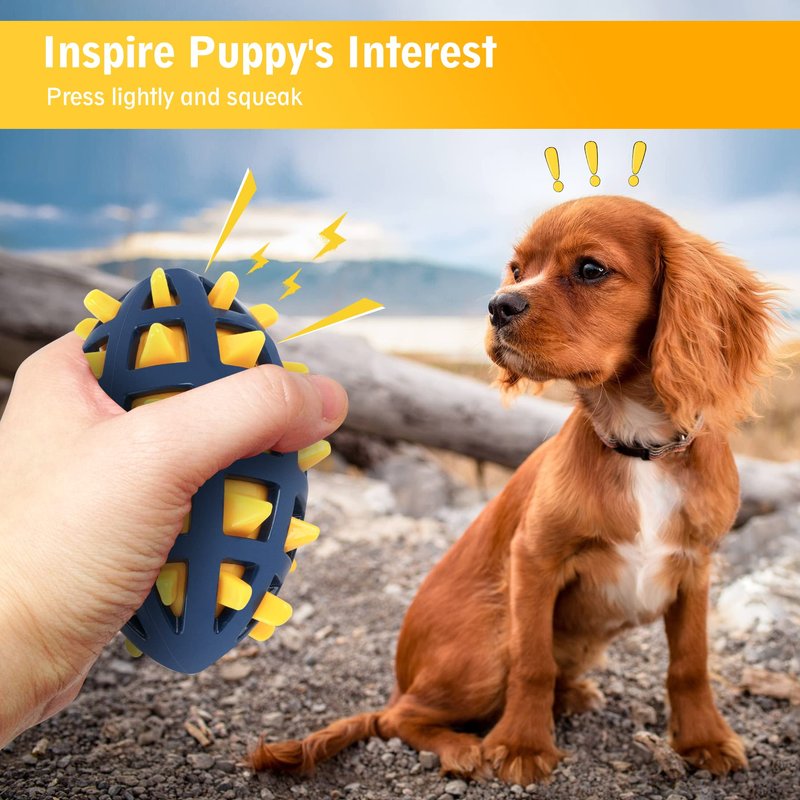 - With a built-in squeaker, easy to bounce when press which can attract the dog's attention easily to play games like tossing and fetching, great interactive dog toy for trainning and consuming it's energy.