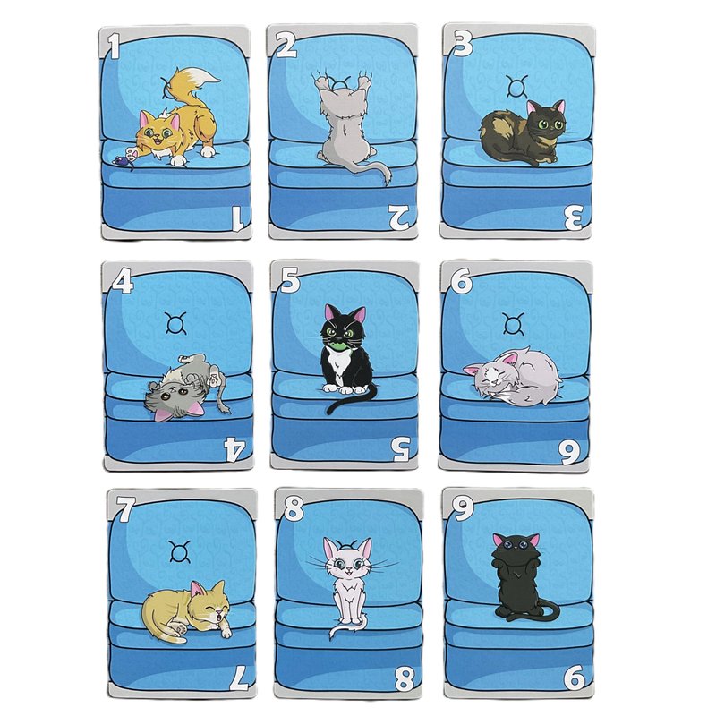 - ADORABLE ARTWORK - These cute and cuddly kittens are looking for a couch to crash on! Be the first player to fill the couch seats with your kittens by placing them according to their numbers.