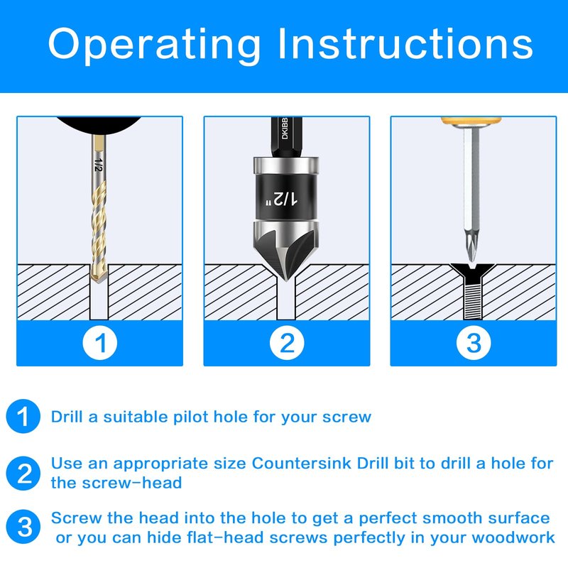 2. Wide Range of Applications: The drill bits are suitable for fine processing and provide accurate countersink holes for a variety of applications, including woodworking, metalworking, and DIY projects.