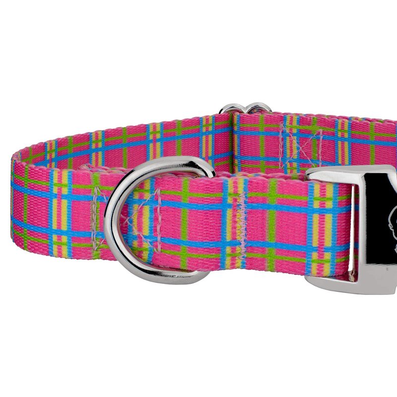 Country Brook Design - Bubblegum Pink Plaid Premium Dog Collar & Leash - Small