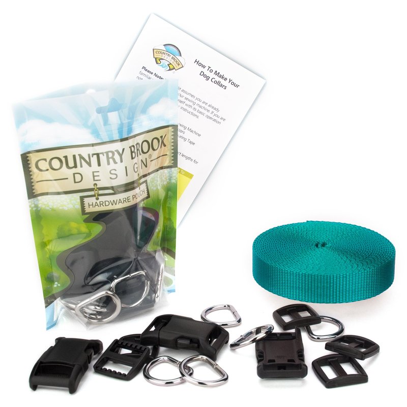 Country Brook Design - Easy DIY Dog Collar Kit Makes (10) 1 Inch Collars with Teal Nylon Webbing