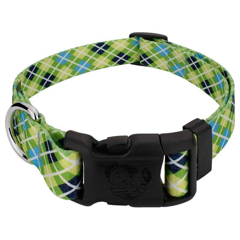 Country Brook Petz - Deluxe Margarita Argyle Dog Collar - Made in The U.S.A. - Plaid and Argyle Collection Featuring Charming Designs (1 Inch, Medium)