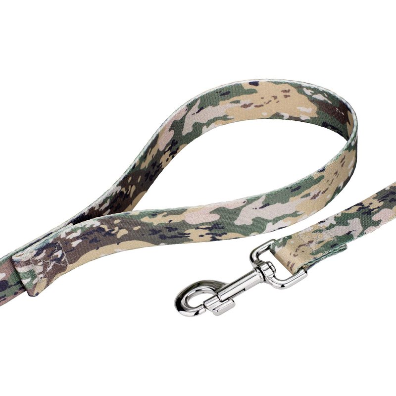 Strike your prey with Country Brook Petz' Mountain Viper Camo Martingale Dog Collar & Leash. Earthy tans, softened greens, and light browns create a color pattern that is indicative of mountain forestry. The chameleon-like camo allows you to hide in plain sight and creates an ideal cover for fallen foliage or piles of leaves. Small and sporadic colors create the illusion of mimicry and allow your pup to blend in naturally with their surroundings. When you order this dog collar and leash set, you will receive a martingale collar and a matching leash; collar size of your choice with an accompanying 6 foot leash. These Mountain Viper Camo collar and leash sets are uniquely designed and have a silky smooth polyester loop that slips over your hand, giving you a comfortable grip while walking your pet; box stitching ensures strength for when your pup pulls against their leash. The Extra Small, Mini and Micro are still reliable with a 700 lb. tensile strength, even though they may seem delicate. Our martingale collars are designed to prevent your pup from pulling out of their collar by tightening around your dog’s neck whenever they try to remove their heads. Perfect for training, the twin loop design gives you control over your stroll. By adjusting the metal slide, you give slack to the loop. Slip it over your dog's neck and decrease size until you can comfortably slip only a couple of fingers under the collar. The unique limited closure prevents the choke from becoming too tight. We at Country Brook Petz pride ourselves on only using the best hardware and you can rest assured that these collars will withstand whatever your pup brings its way. Our collars have wide-mouthed heavy-duty triglides for easy adjustment and heavy-welded D-rings for strength. Designed to give you back control while your pup is leashed. Country Brook Design cannot be held responsible for misuse of this product.