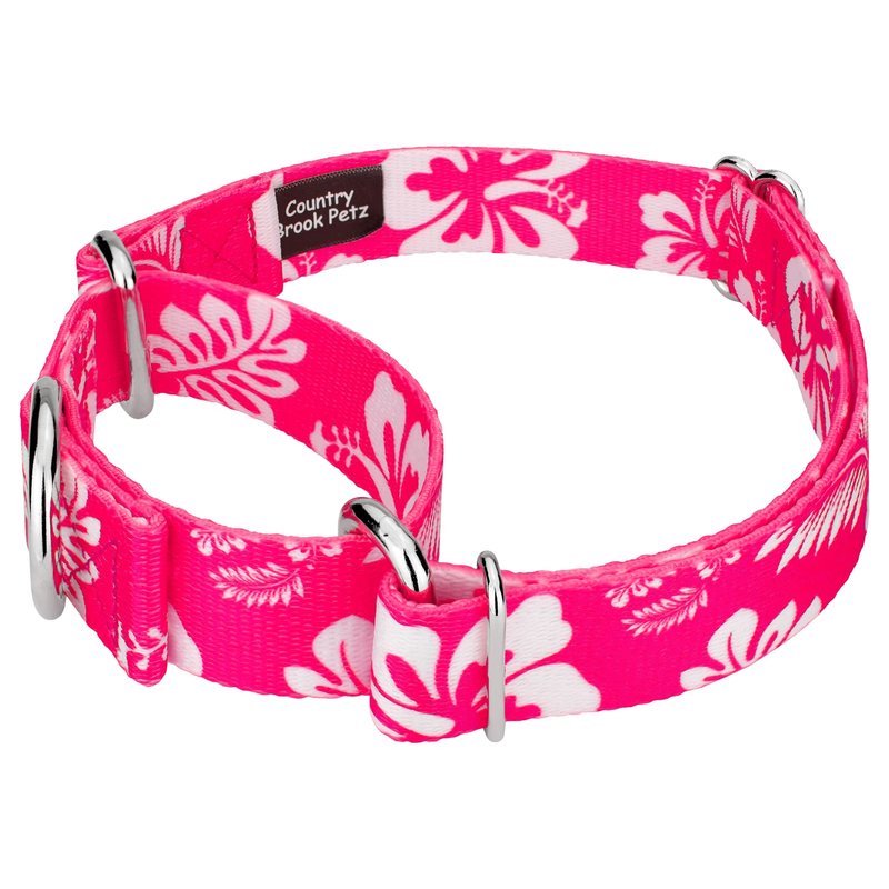 Country Brook Petz - Pink Hawaiian Martingale Dog Collar and Leash - Hawaiian Collection with 7 Tropical Designs (5/8 Inch, Small)