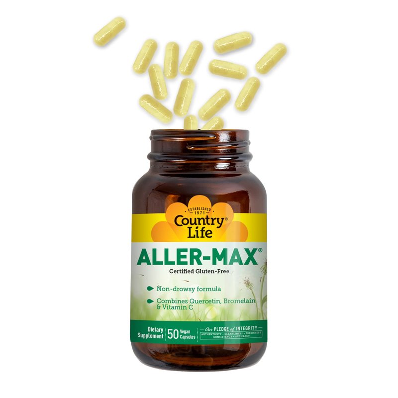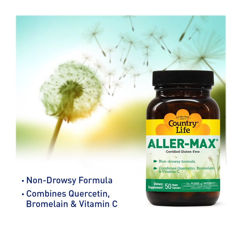 Country Life Aller-Max with Quercetin, Bromelain and Vitamin C Vegetarian Capsules, 50 Count, Certified Gluten Free, Certified Vegan