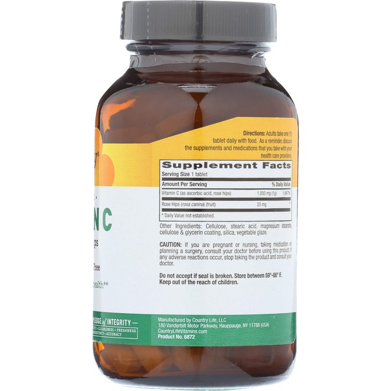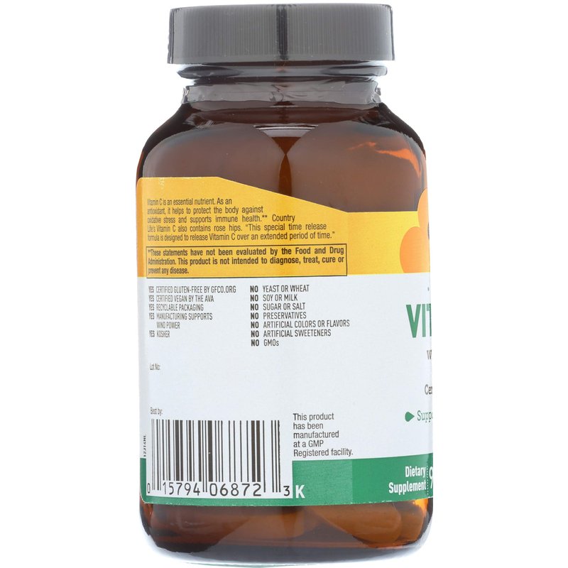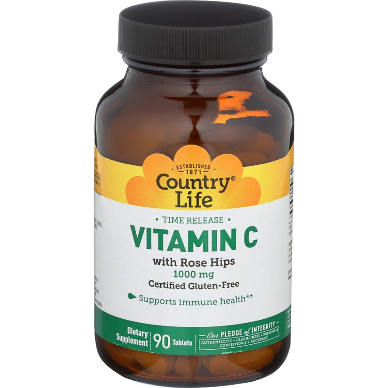 Country Life Time Release Vitamin C with Rose Hips, Supports Immune Health, 1,000mg, 90 Tablets, Certified Gluten Free, Certified Vegan
