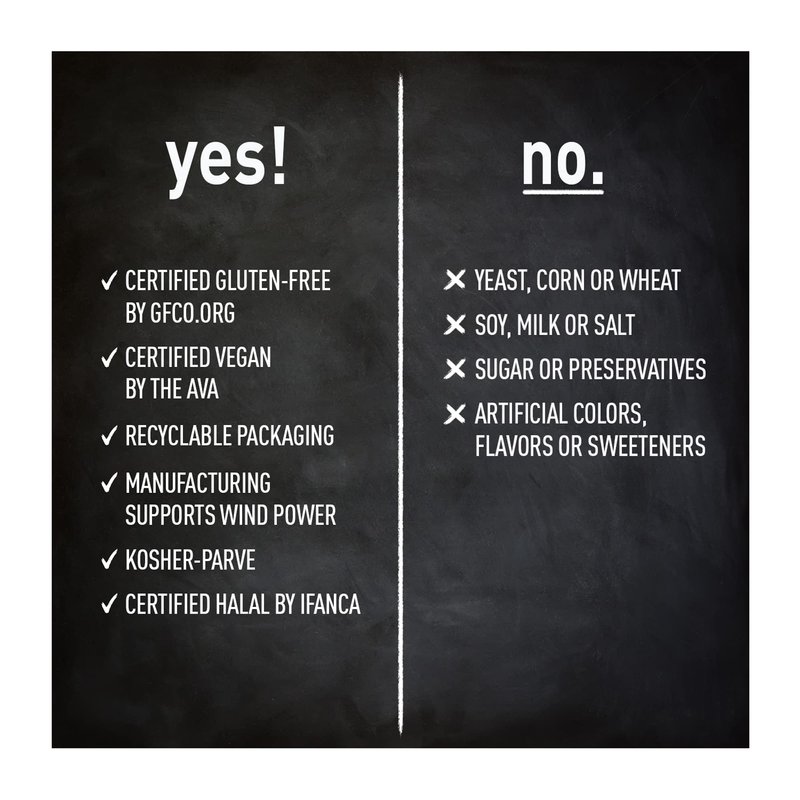 - Certified – Certified Gluten Free by GFCO, Certified Vegan by AVA, Certified Halal by IFANCA