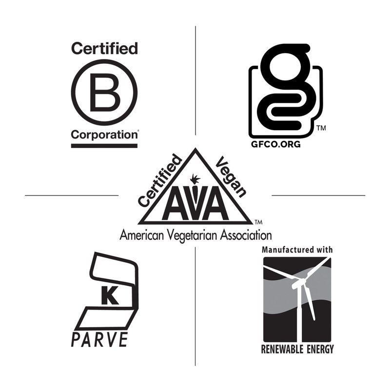 - Certified - Certified Gluten Free by GFCO, Certified Vegan by AVA
