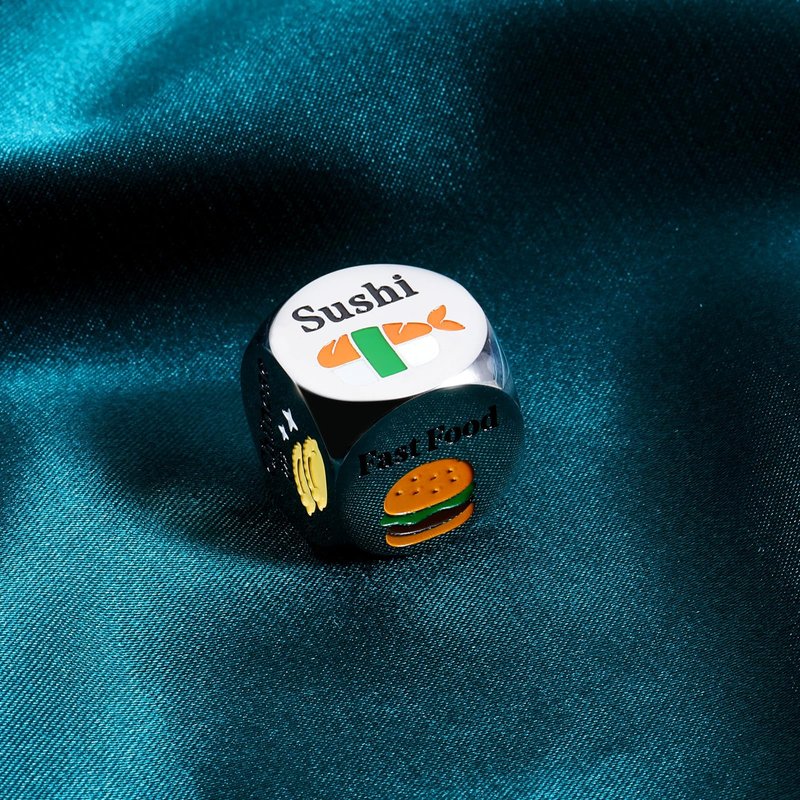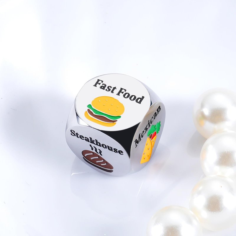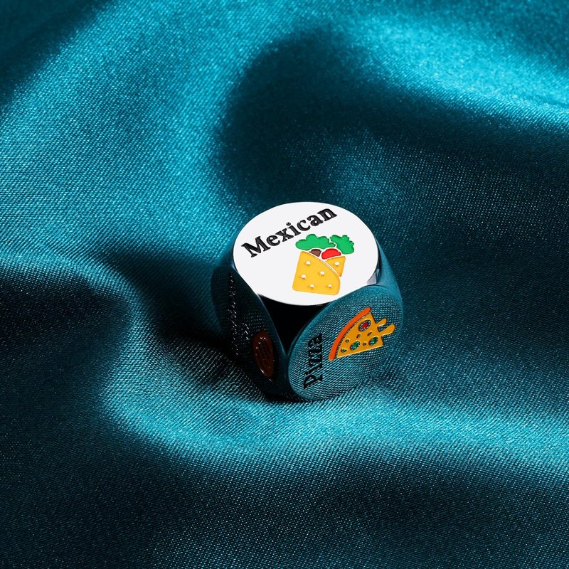 - Funny Dating Food Dice Gifts - You still don't know what to eat with your boyfriend/girlfriend when dating? Fast food, steakhouse, pizza, sushi, Mexican, or Chinese? Let this food dice solve your dating problem. This funny date food dice engraved with six different patterns will be a perfect gift idea for you to send him/her! It's a romantic date gift idea for couples. You still don't know what to eat on date night? Let this dice decide for you!