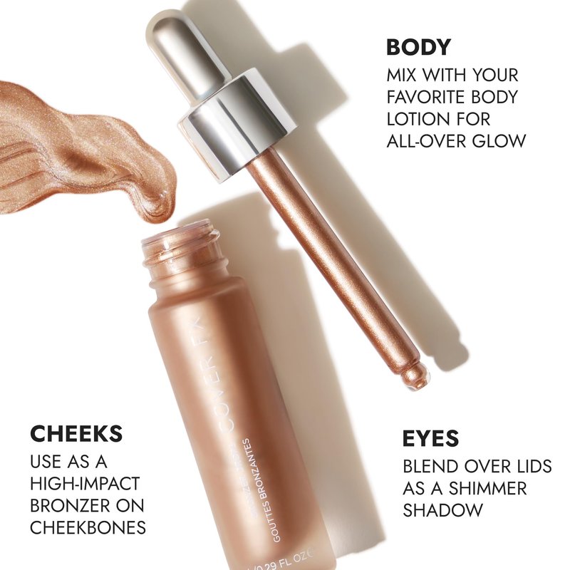 - CLEAN SUN-KISSED LUMINIZER: Enhance your radiance the natural way. Cover FX’s customizable liquid bronzer and highlighter is made with skin-safe ingredients you can use every single day.