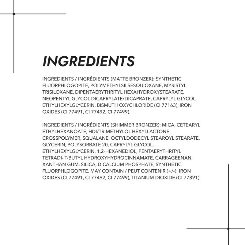 - THE PERFECT BRONZER DUO: Discover this matte and shimmer bronzer duo to illuminate and sculpt your face, now available in a rich bronze shade for all skin tones.