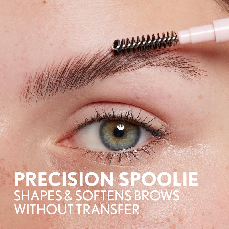 - Precision spoolie that shapes and softens brows