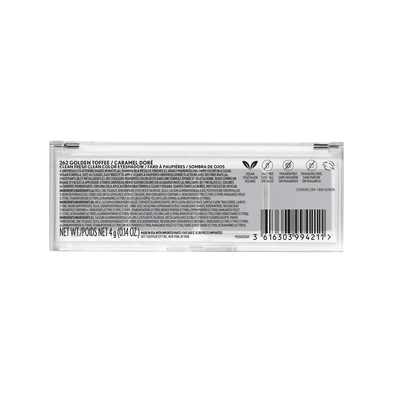 COVERGIRL Clean Fresh Clean Color Eyeshadow – Eyeshadow, Eyeshadow Palette, Shimmer Eyeshadow, Vegan Formula - Golden Toffee, 4g (0.14 oz)