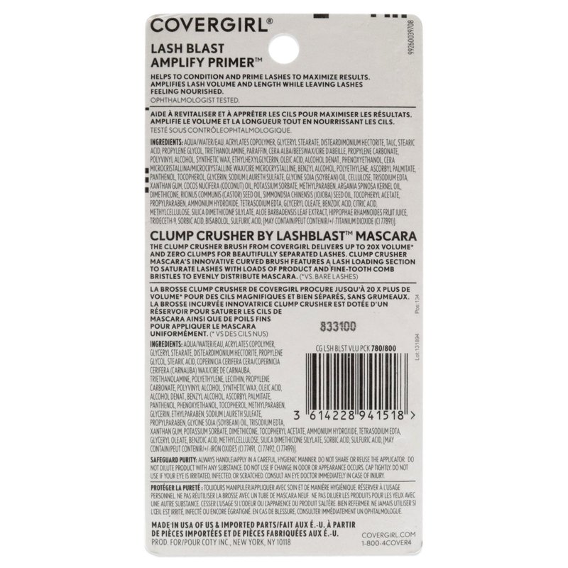 COVERGIRL Clump Crusher Mascara & Lash Blast Amplify Eyelash Primer Pack,1 count, Mascara, Volume Mascara, Volume and Length Mascara, Lengthening Mascara, Double the Volume, Instant Lash Boost