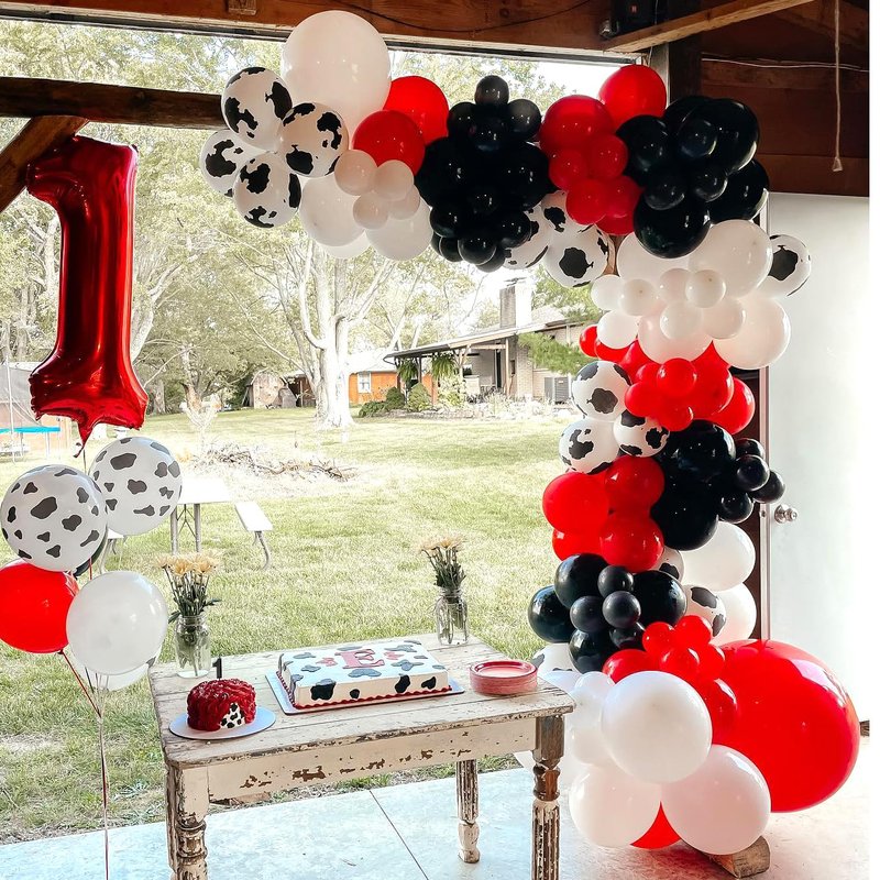Cow Party Decorations-Cow Balloon Garland Arch Kit-Red Black White Balloons for Cowboy Cowgirl Party Decorations Baby Shower Animal Birthday Party Suppllies