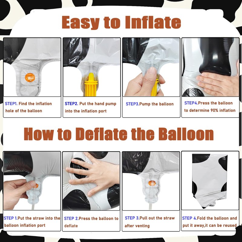 - Huge 40 inch | Helium Supported : Our cute cow balloons are made of high-grade nylon material, thick and sturdy, not easy to explode, and have no odor. Foil mylar balloon can support both air and helium. Please do not inflate the balloon by more than 90%. A balloon inflated with helium can float for many days.