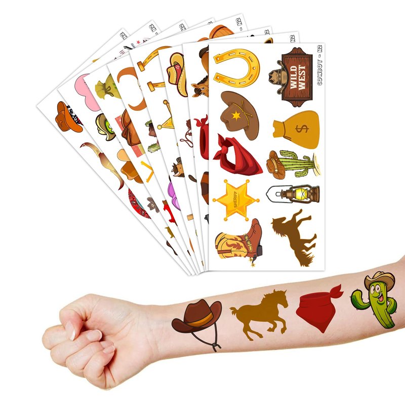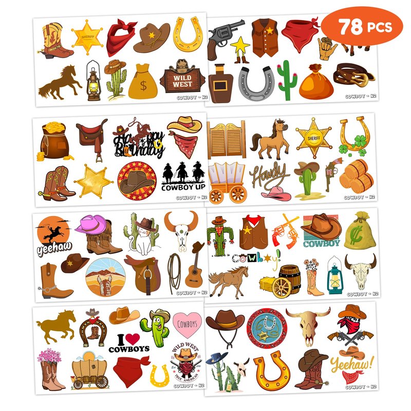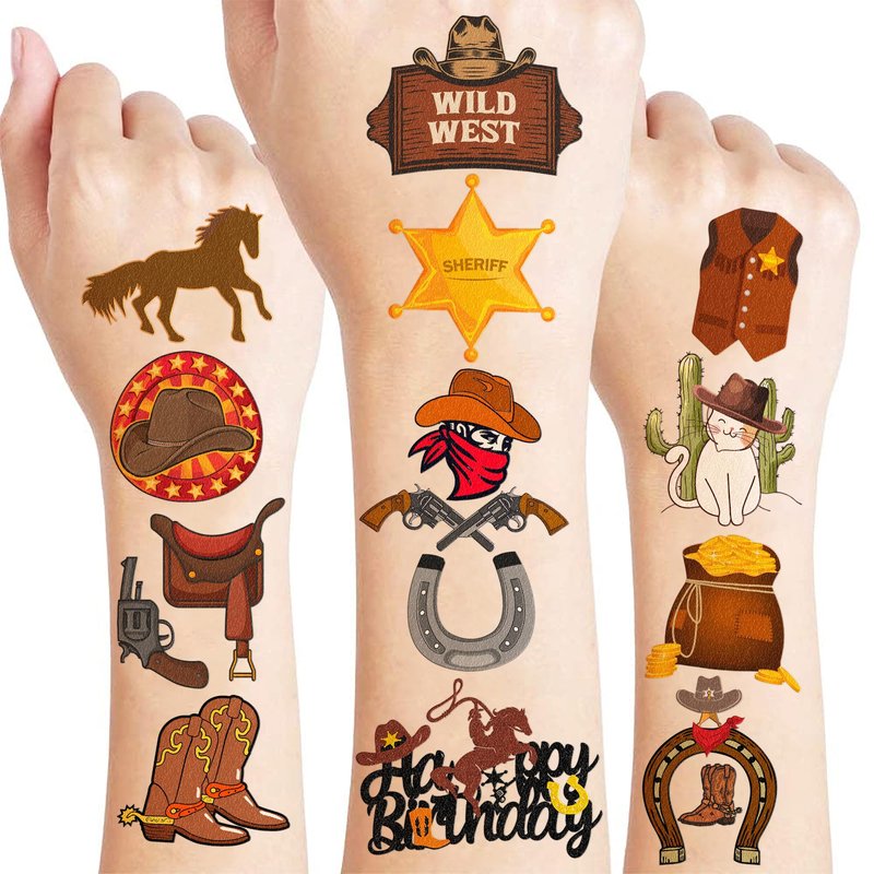 - Customer Service: Kindly contact us ASAP for any helps and all issues can be solved. This set of Cowboy Western Temporary Tattoos party favors are abundant in quantity and diverse styles that can meet your various party needs or daily needs. Thanks so much for shopping with us!