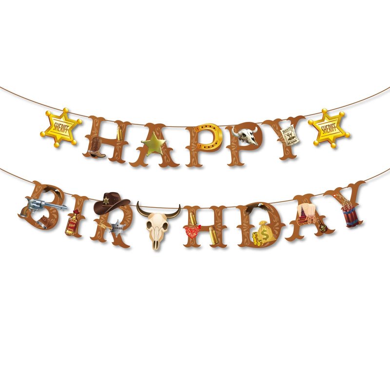 - Need to Assemble: Our Western Cowboy banners are pre-cut and pre-folded, You need to string these letter theme elements onto a hanging rope.The view of vibrant color will delight your guest, bringing much fun and easily create unforgettable moments for you at your birthday party.