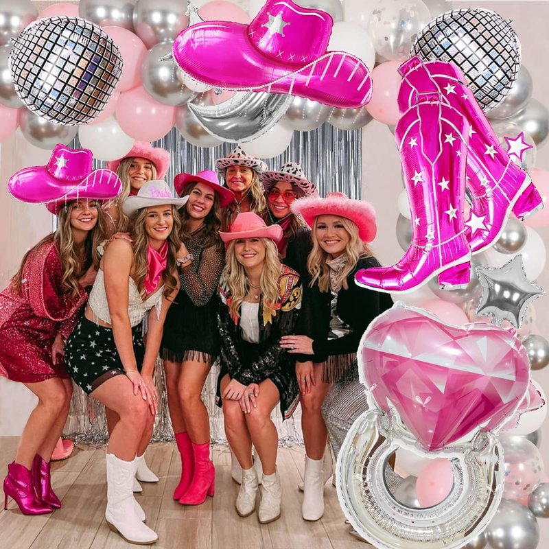 - 2: Party decoration: Use our pink cowgirl boot and hat balloons to decorate your western themed party .Its Perfect for cowgirl birthdays,western girl party,bridal shower party and disco theme Last Rodeo Bachelorette party.