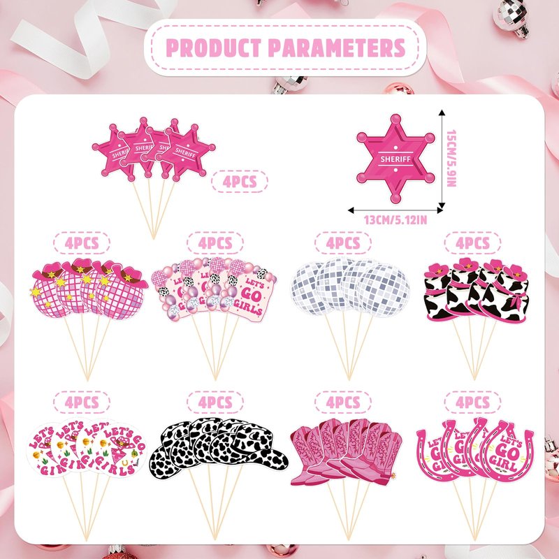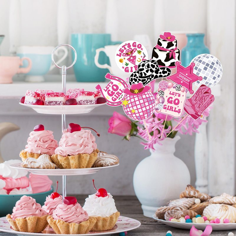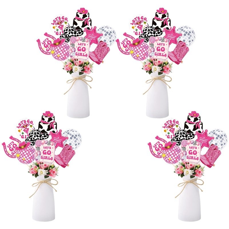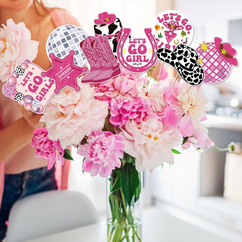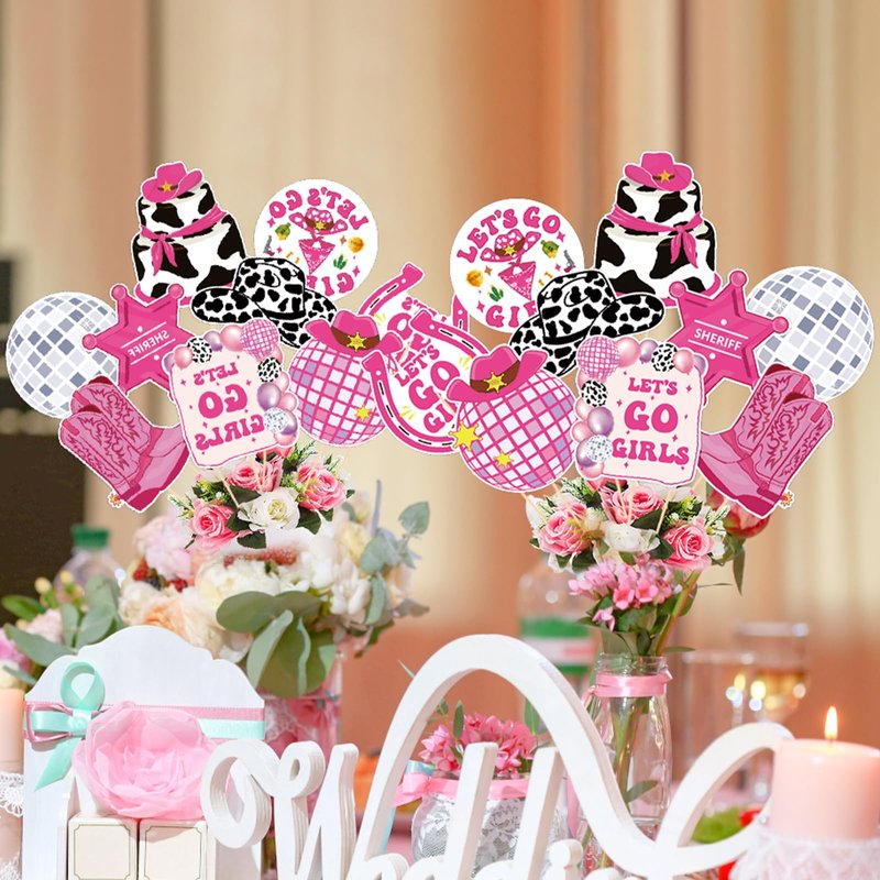 - Design and Feature: Design and Feature: Our disco cowgirl table centerpiece sticks toppers decorations is designed for bachelorette birthday and cowgirl themed parties. Decorating the party indoors or outdoors for photos can make the party a great memory.