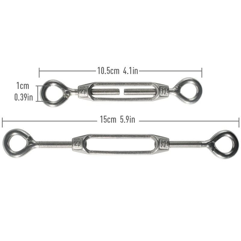 Cozihom M4 Eye & Eye/O to O Turnbuckle 304 Stainless Steel, Hardware Kit for Wire Rope Tension Heavy Duty, for Sun Shade, Tent Installation, Anti-Rust, 6 Packs