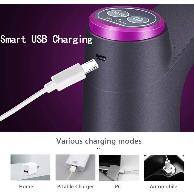 2. USB powered: Rechargeable battery, can be used to pump out 4-6 water jugs if fully charged.