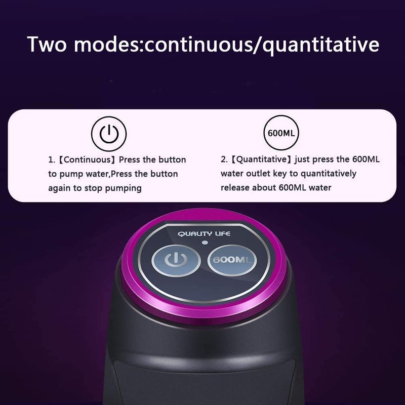 - [ Upgrade USB Rechargeable Battery ] - Newly upgraded internal chip in 2020, perfectly solve the problem of battery problem to charge. This water gallon pump built in rechargeable 1200mAh lithium battery. Once full charged can used for 1 month or 5-6 bottles of 5 gallon water bottle, no need to charge every day. It can be taken along anywhere for water dispensing. Suit for Indoor or Outdoor.