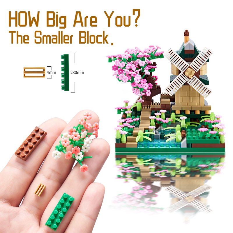 - 🌼Good-quality mini building blocks:Architecture River Windmill Collection building set is made of original ABS material, durable plastic set. The building blocks are as small as 4 mm x 5 mm, the build is challenging but fun. It's small enough to not take up a lot of space, but colorful enough to catch the eye,and looks really cute on a shelf or desk