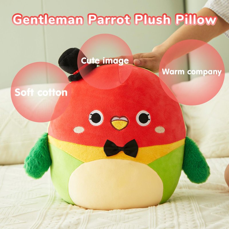 - Multipurpose: Our Gentleman parrot pillow plush is sure to be your friend. It's a great gift for birthdays, Valentine's Day, Christmas for plush. for sofa, living room decor or animal themed party decorations.