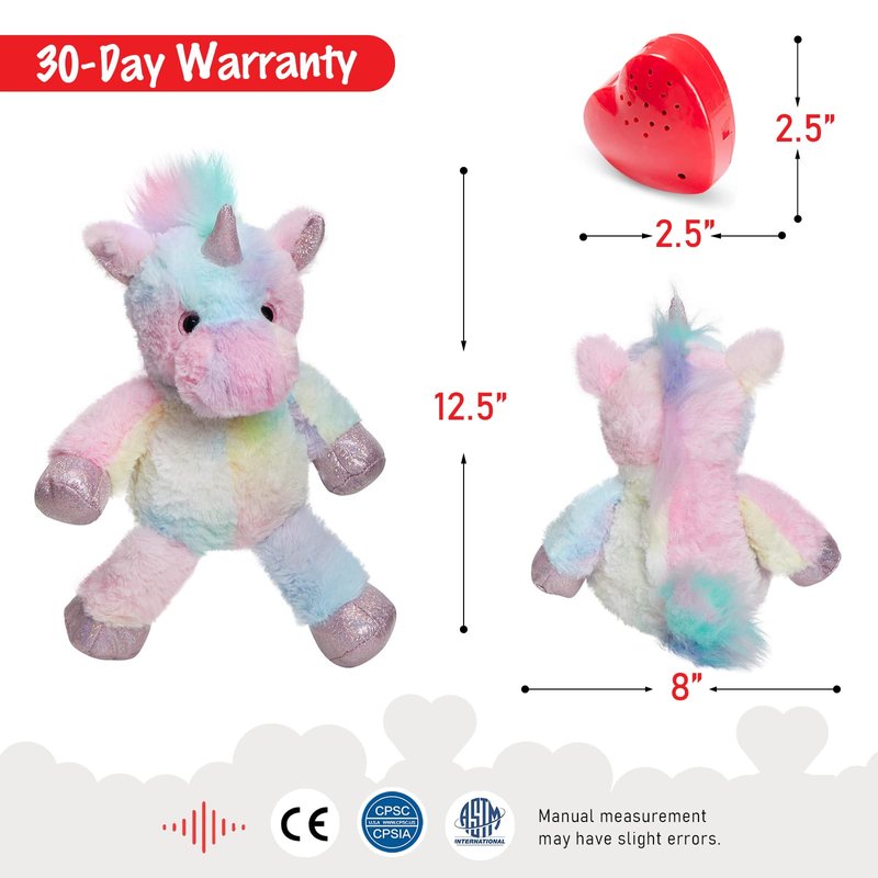 CozyWorld 12.5" Heartbeat Unicorn Recordable Stuffed Animals Voice Sweet Messages Recorder Soft Plush Toy Playback Your Words Birthday Gifts for Toddler Kids