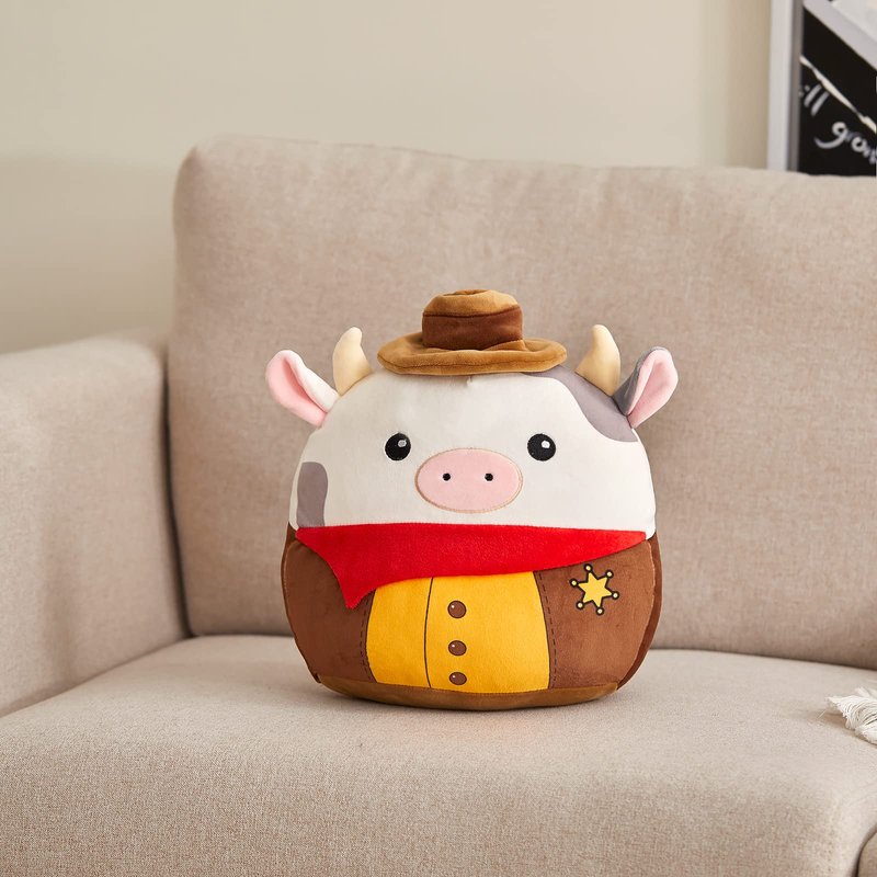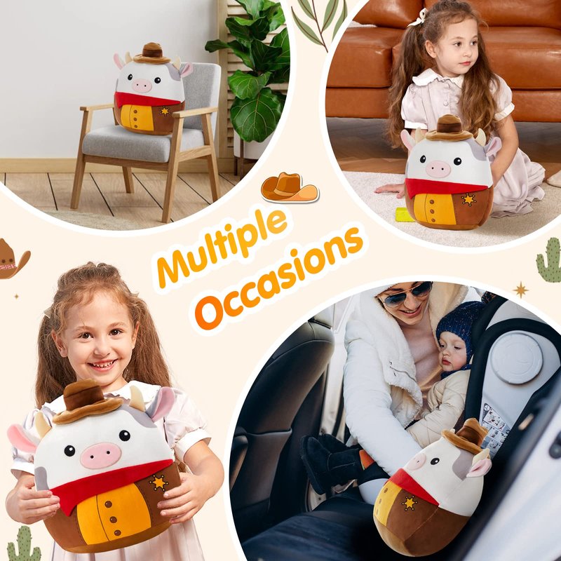 - Cute DESIGN-This cute cow plush pillow toy is a cowboy, a super soft, classic and collectible comfy friend for boys and girls.