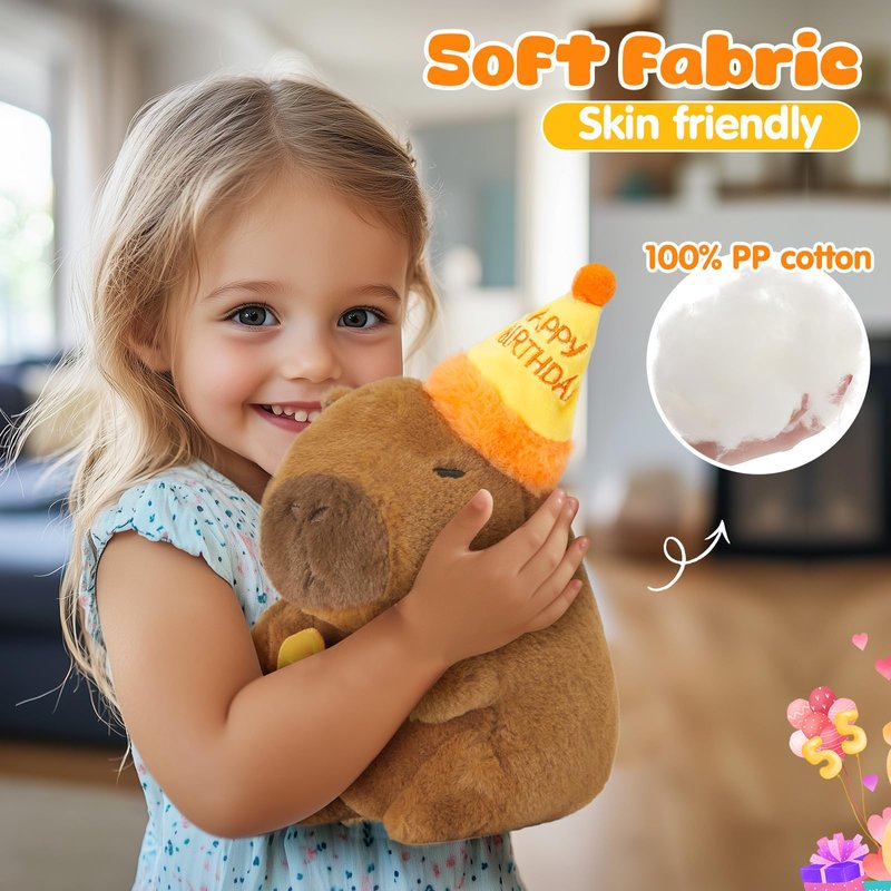 - Perfect Birthday Gift: Celebrate birthdays in style with our soft capybara plushies toy, creating a happy birthday atmosphere. People of all ages will love this plush toy, the birthday capybara is the perfect sweet gift for family, lovers or friends.