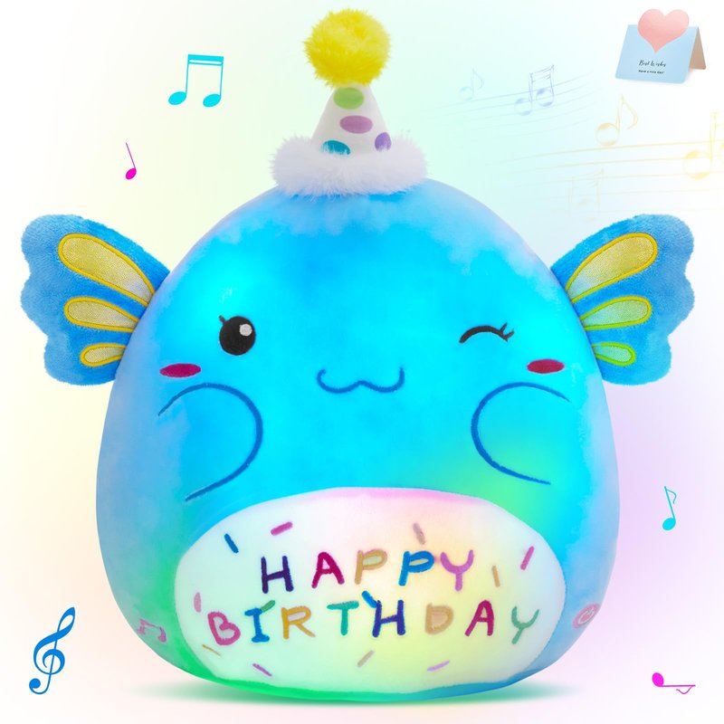 CozyWorld Light up Musical Happy Birthday Axolotl Plush Pillow,LED Stuffed Animals,Blue Axolotl Glowing Plush Toy,Light-up Singing Plush Birthday Gift for Toddler Boys Girls,14''