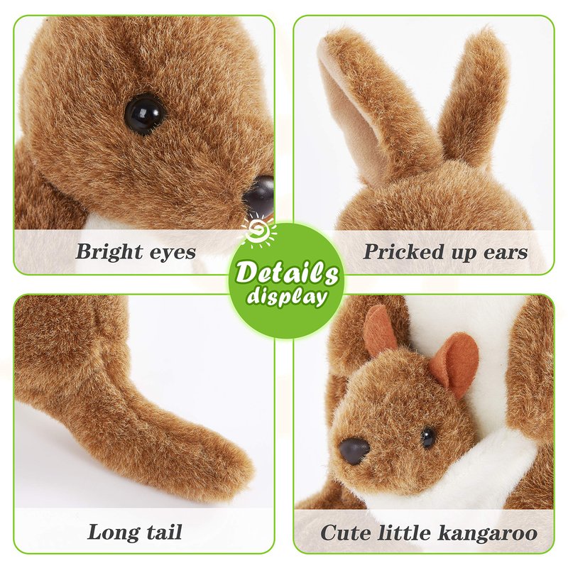 - PERFECT GIFTS FOR CHILDREN: Our kangaroo stuffed animal materials and workmanship are excellent,the kangaroo is a good choice for birthdays, baby showers, baptisms, Easter, Valentine's Day, Christmas & more! And it will be packaged inside an individual packing and suitable as a gift for kid. If your children are older than 3 years, please choose it