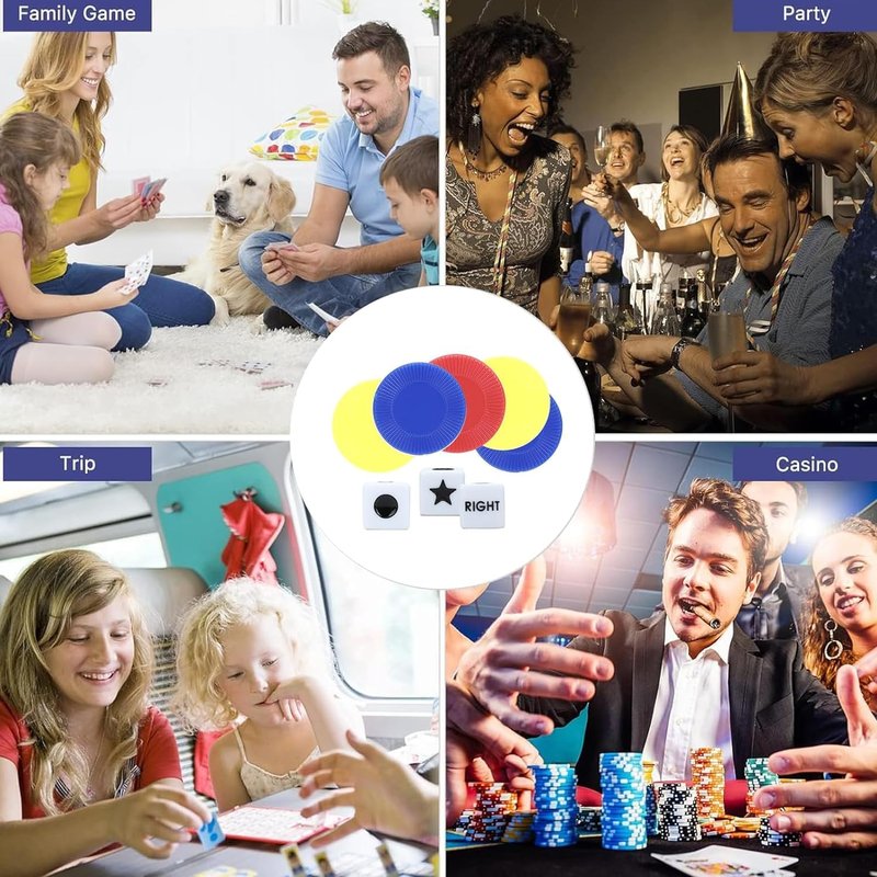 - Left right dice game: For 3 or more players with at least 3 chips per player, play and interact with family and friends according to the rules, spend quality time with your friendsor family!