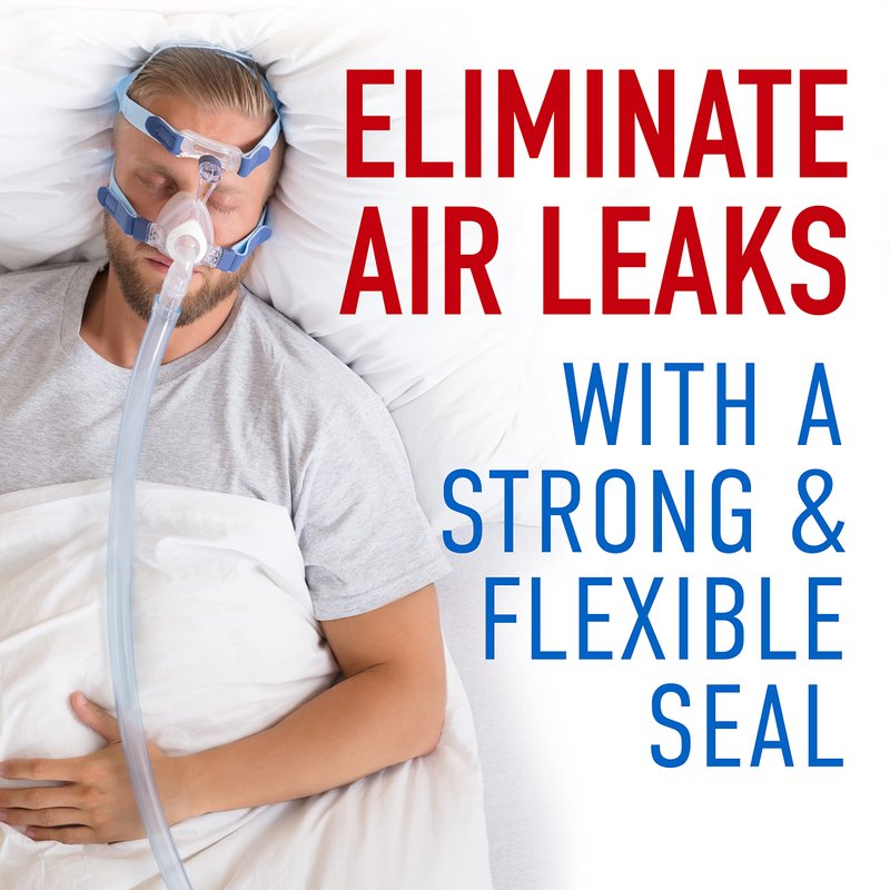 - Creates a liquid like seal around the mask that stops air from escaping that causes irritating noises and unsafe air leaks.