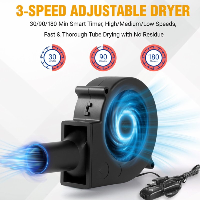 - 【Compact & Travel-Friendly】Lightweight and easy to carry, this dryer is perfect for home use, vacations, or business trips. No more shaking water out of your tubing while traveling or before bedtime.