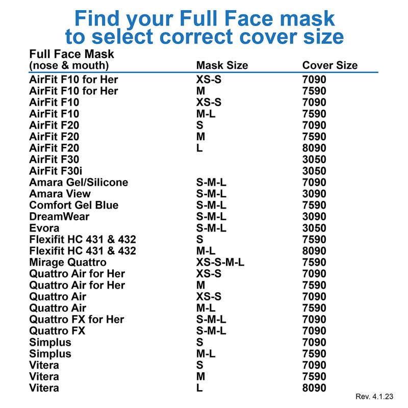 - THE SOLUTION: See size charts at left. Since 2015 we are the original American made, blue, soft cotton/polyester blend CPAP mask liners that help reduce air leaks and skin irritation.