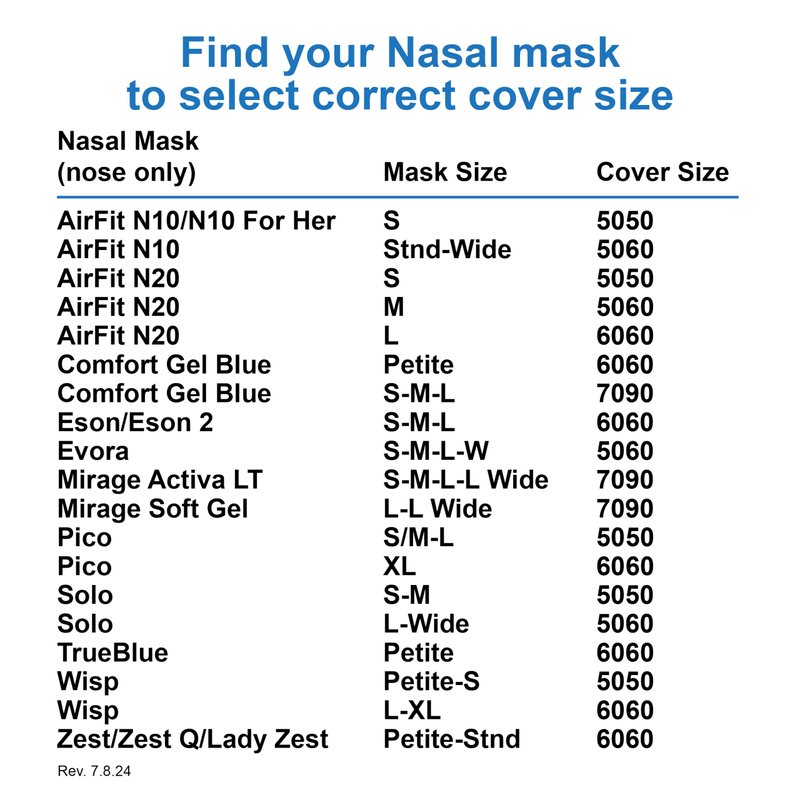 - THE SOLUTION: See size charts at left. Since 2015 we are the original American made, blue, soft cotton/polyester blend CPAP mask liners that help reduce air leaks and skin irritation.
