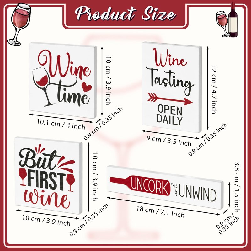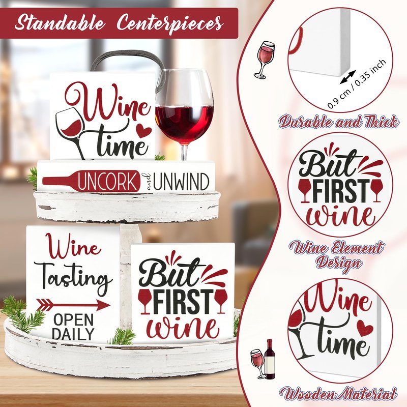 - Unique Wine Design: Our rustic wooden centerpieces come with adorable wine patterns and iconic phrases like 'Wine Tasting Open Daily,' 'Uncork and Unwind,' 'Wine Time,' and more. Each block plaque is about 0.35 inches thick, making it ideal for any tabletop decor.