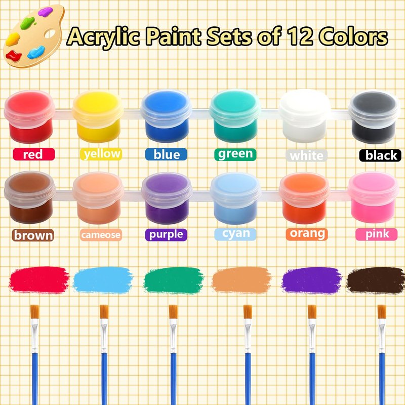 - Rich Colors: This acrylic paints for kids has 12 colors, black, white, green, blue, yellow, red, pink, light blue, orange, purple, cameose, brown. Rich colors can easily stimulate children's interest in painting