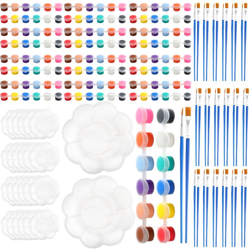 - Kids Painting Set: you will receive acrylic paint set contains 24 set 12-color paint strips, 48 paint brushes (24 flat brushes and 24 pointed brushes) and 24 mini palettes. Sufficient quantity can meet different needs of painting and coloring