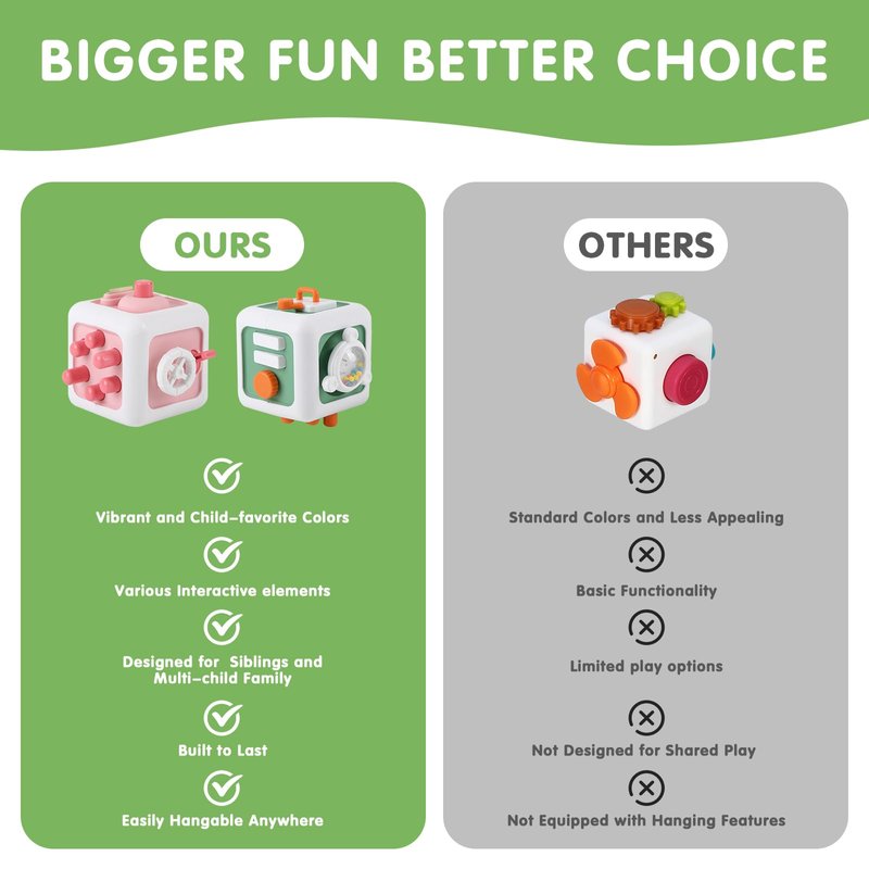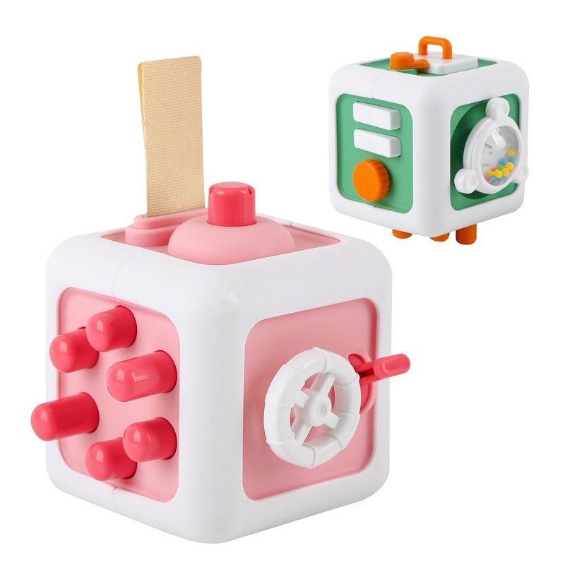 - 10-IN-1 FUN ACTIVITY: The 2 Pcs Pink & Green Busy Cube is a unique cognitive sensory toy that offers 10 different engaging activities, making it an excellent choice for interactive play. Perfect for keeping your little ones entertained during travel or at home