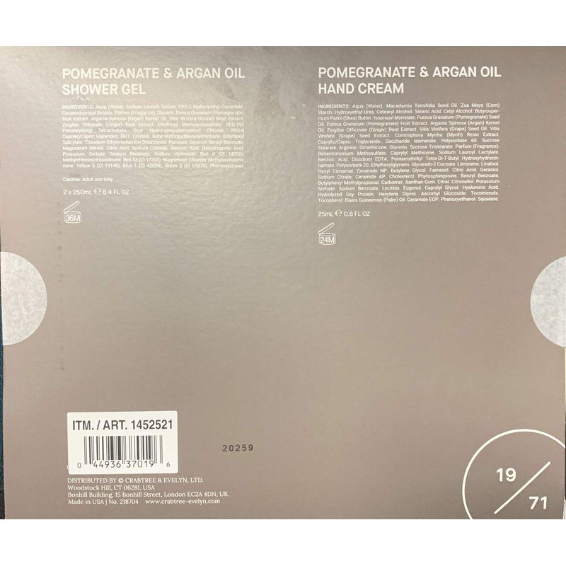 Crabtree and Evelyn Cult Collection Pomegranate & Argan Oil Hand Cream 0.8 Oz & Shower Gel 8.4 Oz