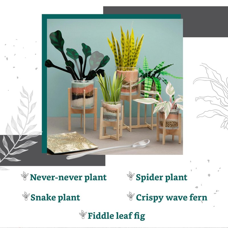 - Endless home décor possibilities: Perfect for brightening up any space, faux plants kit is the ideal addition to your desk, dresser, or any area in need of a vibrant and artistic touch. With our mini sand art creations you'll craft stunning and personalized home decor accents.